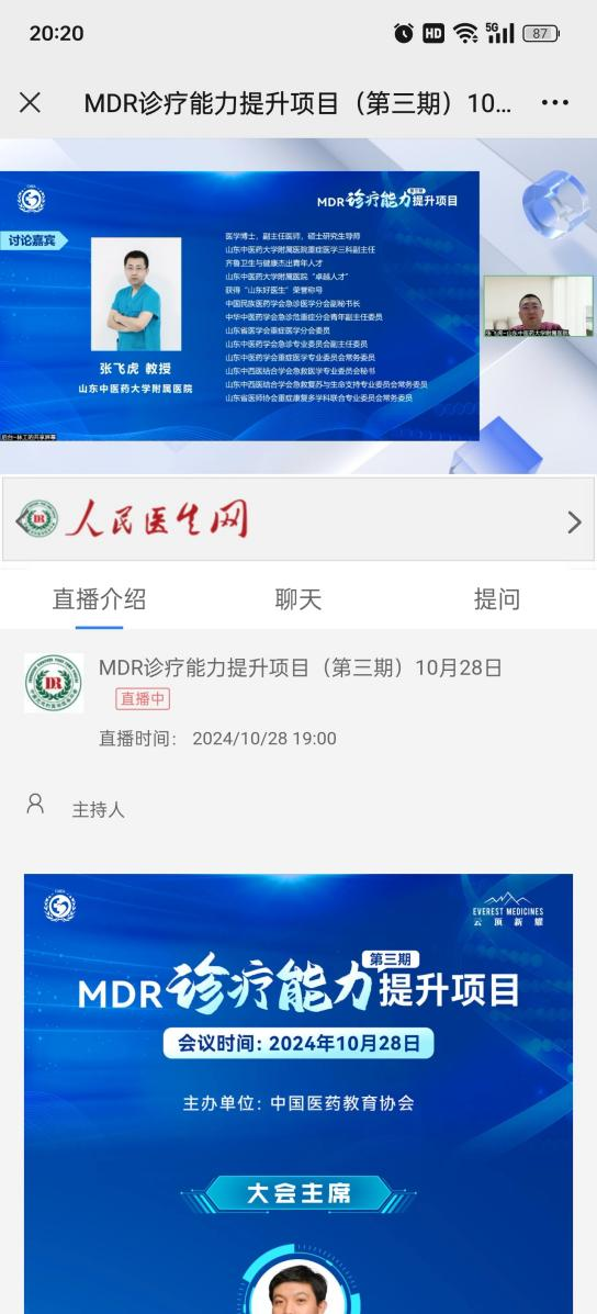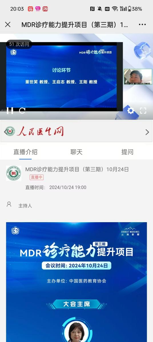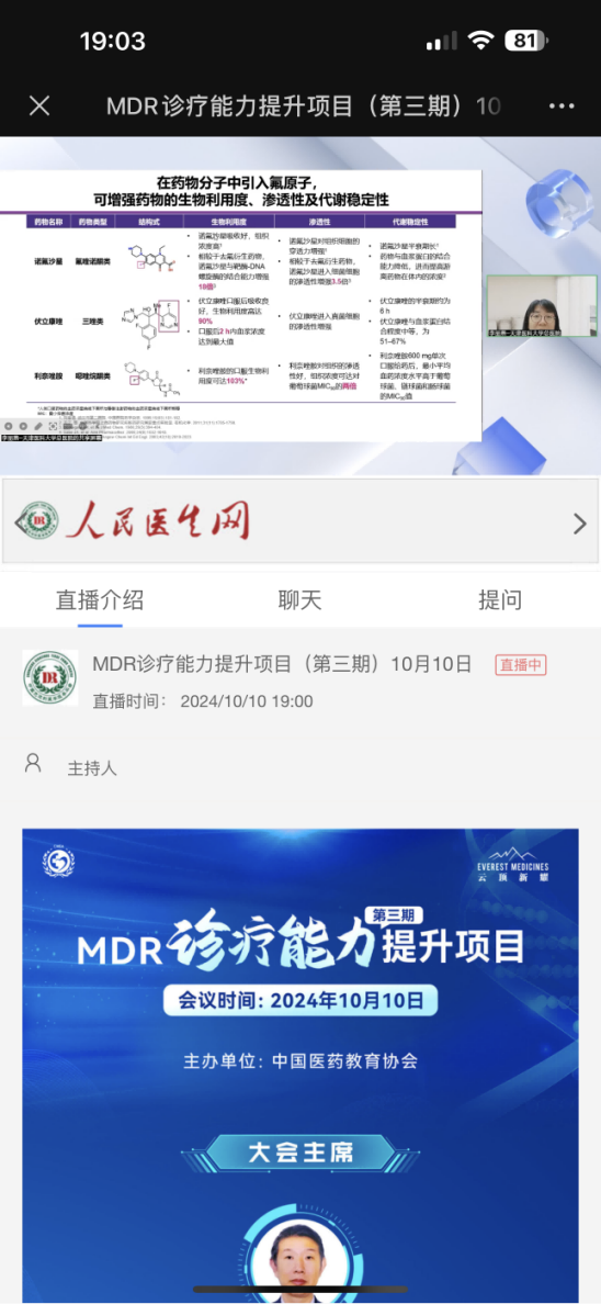 鉴于此,中国医药教育协会于2024年9月至11月举办了“MDR诊疗能力提升项目(第三期)”,项目共举办了25场线上会议,会议围绕感染热点话题、药物分析和指南解读等开展规范化诊治及防控培训,同时开展丰富的临床实践病例分享研讨,会议搭建交流平台,旨在促进MDR感染诊治和防控临床能力的提升。